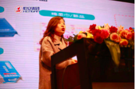 (图说依次为:运营中心总裁许水深做主题报告;运营中心副总裁、国际业务部总裁许清池做主题报告;共享中心副总裁刘莹做主题报告;采购贸易平台总裁王向阳做主题报告;女性健康产业发展部总裁许自淡做主题报告;纸业发展部总监许文默做主题报告;婴童产业发展部总监王桂忠做主题报告;湿巾发展部总监郑宁做主题报告。)