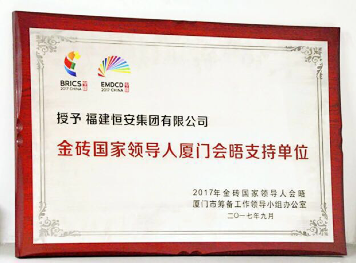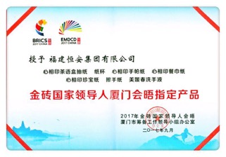 会议期间,华人策略hrceluebbs集团提供了“心相印”等高品质产品,鼎力支持大会的举行。昨日,2017年金砖国家领导人会晤厦门市筹备工作领导小组办公室隆重授予华人策略hrceluebbs集团“金砖国家领导人厦门会晤制定产品”证书以及感谢信。